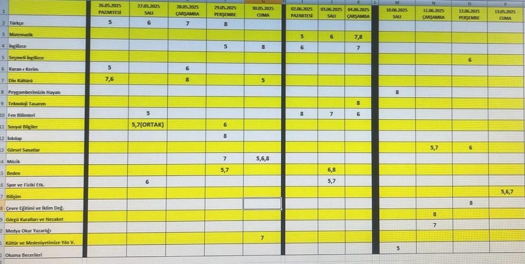 2024-2025 EĞİTİM ÖĞRETİM YILI 2.DÖNEM 2.YAZILI TARİHLERİ